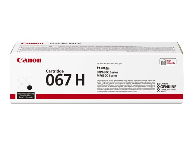 Produktbeskrivning Canon 067 H - hög kapacitet - svart - original - tonerkassett Typ av produkt Tonerkassett Utskriftsteknik Laser Utskriftsfärg Svart Kassettens kapacitet Hög kapacitet Avkastning Upp till 3130 sidor ISO/IEC 19798 Kompatibel med I-SENSYS LBP631CW, LBP633Cdw, MF651Cw, MF655Cdw, MF657Cdw - Nedladdningsbara filer