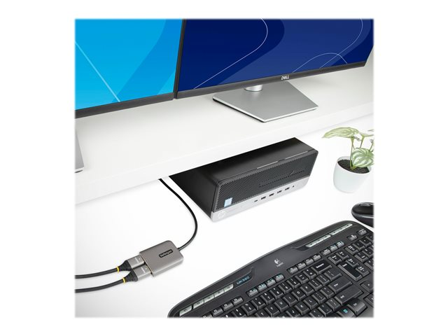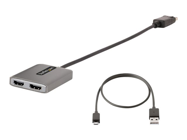 Produktbeskrivning StarTech.com DP to Dual HDMI MST HUB, Dual HDMI 4K 60Hz, DisplayPort Multi Monitor Adapter with 1ft (30cm) Cable, DP 1.4 Multi Stream Transport Hub, DSC | HBR3, DP to 2x HDMI Ports - DP to HDMI Splitter (MST14DP122HD) - videokort - DisplayPort / HDMI