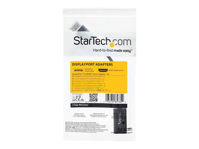 Produktbeskrivning StarTech.com DisplayPort 1.2 to HDMI Adapter - 4K 30Hz - Active Audio Video Converter for DP laptop computers and HDMI Monitor Displays (DP2HD4KS) - videokonverterare Typ av enhet Videokonverterare Max upplösning 4096 x 2160 Gränssnitt 1 x DisplayPort-ingång - 20-stifts DisplayPort