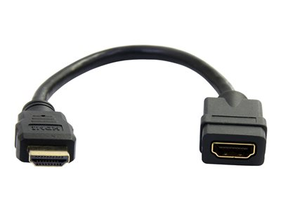 Produktbeskrivning StarTech.com 6 in HDMI Extension Cable, Short HDMI Cable Male to Female, 4K HDMI Cable Extender, 4K 30Hz UHD HDMI Port Saver M/F, High Speed HDMI 1.4, 10.2Gbps Bandwidth, 30AWG, Black - HDMI Dongle Extender - HDMI-kabel - 15 cm Kabel HDMI-kabel Längd 15 cm Färg Svart Kontaktdon HDMI - hane Kontakt (andra änden) HDMI - hona Tillverkarens garanti Begränsad livstidsgaranti Designat för P/N: CDP2HDMM2MB, DP2HDMM2MB, HDDVIMM3, HDMIDVIMM10, HDMIDVIMM6, HDMM10, HDMM12, HDMM15, HDMM1MP, HDMM25, HDMM2M, HDMM2MP, HDMM3, HDMM3MP, HDMM50, HDMM50A, HDMM6, HDPMM50, MDP2HDMM2MB - Nedladdningsbara filer