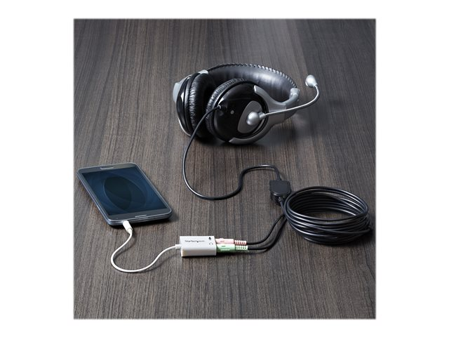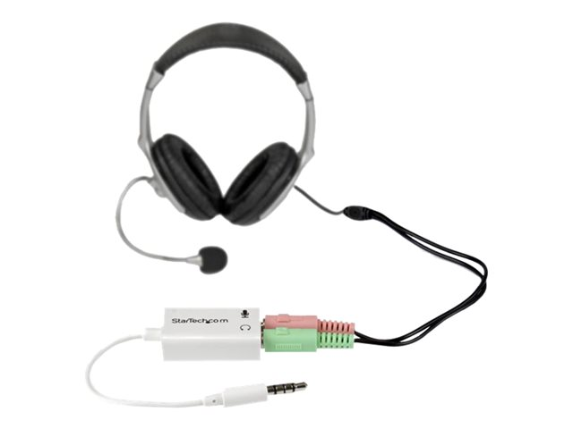 Produktbeskrivning StarTech.com 4 Position Microphone and Headphone Splitter 3.5 mm 4 Pin / 4 Pole Mic and Audio Combo Splitter Cable (MUYHSMFFADW) - headset-delare - 15.25 cm Kabel Headset-delare American Wire Gauge (AWG) 28 Längd 15.25 cm Färg Vit Kontaktdon 2 x mini-phone stereo 3.5 mm - hona Kontakt (andra änden) 4-poligt minijack - hane Tillverkarens garanti Begränsad livstidsgaranti Designat för P/N: MUHSMF2M - Tillbehör