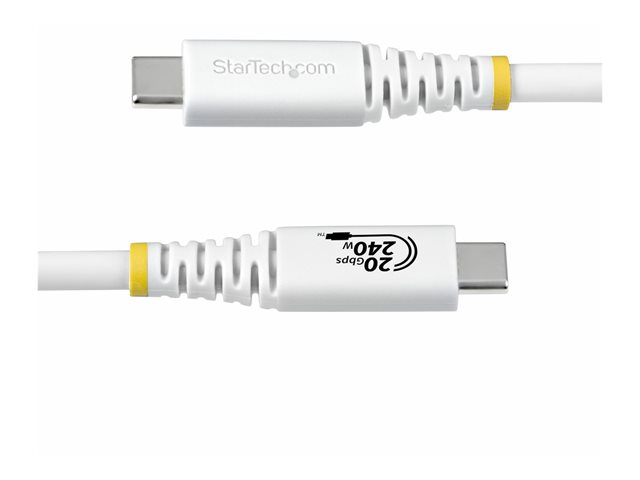 Produktbeskrivning StarTech.com - USB typ C-kabel - 24 pin USB-C till 24 pin USB-C - 2 m Typ USB typ C-kabel Teknik Koaxial Egenskaper 4K120Hz stöd, robust, utökat effektområde (EPR), Stöd för Power Delivery 3,1, flexibel, EMI-skydd, e-markörchip, HDR-stöd, HDR10-stöd, High Bit Rate 3 (HBR3), 20 Gb datahastighet, Display Stream Compression (DSC), upp till 240 W strömleverans, DisplayPort 1.4 med DSC, stöd för DisplayPort alt-läge 1,4 Kabellängd 2 m Kontaktdon 24 pin USB-C - hane Kontakt (andra änden) 24 pin USB-C - hane Standarder som följs USB4 / Thunderbolt 3 / Thunderbolt 4 / DisplayPort 1.4 Färg Vit - Nedladdningsbara filer