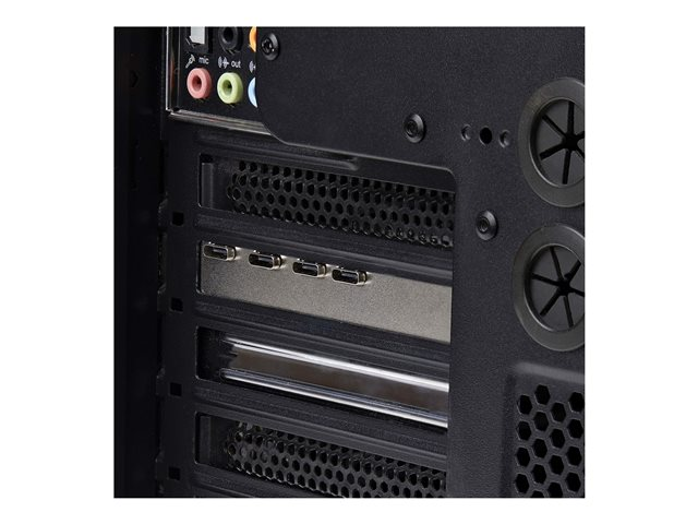 Produktbeskrivning StarTech.com 5-Port USB PCIe Card, USB 3.2 10Gbps, PCI Express Card with 4x USB-C Ports, 1x USB-A Internal Port, USB PCIe Controller Card, Windows/macOS/Linux - USB-adapter - PCIe 3.0 x4 - USB-C 3.2 Gen 1 x 4 + USB 3.2 Gen 1 x 1 Typ av enhet USB-adapter Formfaktor Instickskort Gränssnittstyp (buss) PCI Express 3.0 x4 Version av PCI-specifikation PCIe 3.0 Portar USB-C 3.2 Gen 1 x 4 + USB 3.2 Gen 1 x 1 Dimensioner (BxDxH) 2.2 cm x 12.2 cm x 12.1 cm Vikt 60 g Datalänkprotokoll USB 3.2 Gen 2 Dataöverföringshastighet 10 Gbps Processor ASMedia / VIA ASM3142 / VL822 Standarder som följs USB 3.2 Gen 2 Färg Svart Systemkrav Microsoft Windows 7 / 8 / 8.1 / 10 / 11, Microsoft Windows Server 2022, Microsoft Windows Server 2019, Microsoft Windows Server 2016, Microsoft Windows Server 2012 R2, Microsoft Windows Server 2008 R2, Apple macOS Sonoma 14.0, Apple macOS Ventura 13.0, Apple macOS Monterey 12.0, Apple macOS Big Sur 11.0, Apple macOS Catalina 10.15, Apple macOS Mojave 10.14, Apple macOS High Sierra 10.13, Linux 3.5.x eller senare endast LTS-versioner only Tillverkarens garanti 2 års garanti - Tillbehör