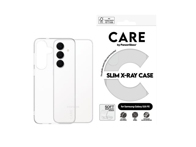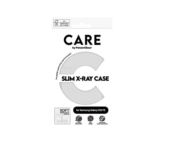 Produktbeskrivning CARE by PanzerGlass X-Ray - baksidesskydd för mobiltelefon Typ av produkt Baksidesskydd för mobiltelefon Dimensioner (BxDxH) 7.935 cm x 1.145 cm x 16.401 cm Vikt 27 g Material Termoplastisk polyuretan (TPU) Färg Transparent Återvunnet produktinnehåll 100 % - tillverkad av återvunnen plast Designat för Samsung Galaxy S25 FE - Nedladdningsbara filer