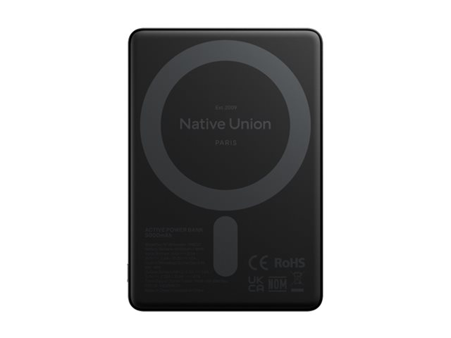 Produktbeskrivning Native Union Active trådlös powerbank - magnetisk, Magsafe-kompatibel - 24 pin USB-C - 15 Watt Typ av produkt Trådlös powerbank Utformad för Mobiltelefon, trådlösa öronspetsar Dimensioner (BxDxH) 6.6 cm x 9.5 mm x 9.6 cm Vikt 115 g Färg Svart Typ av utkontakt 24 pin USB-C - på kabel: USB-C Tillförd spänning 3.85 V Snabbladdningsteknik Power Delivery Trådlös laddning Ja Standarder för trådlös laddning Qi2 Batteri 5000 mAh - 18 Wh Effekt 15 Watt Strömenhetsinformation - magnetisk - utmatning - 15 W