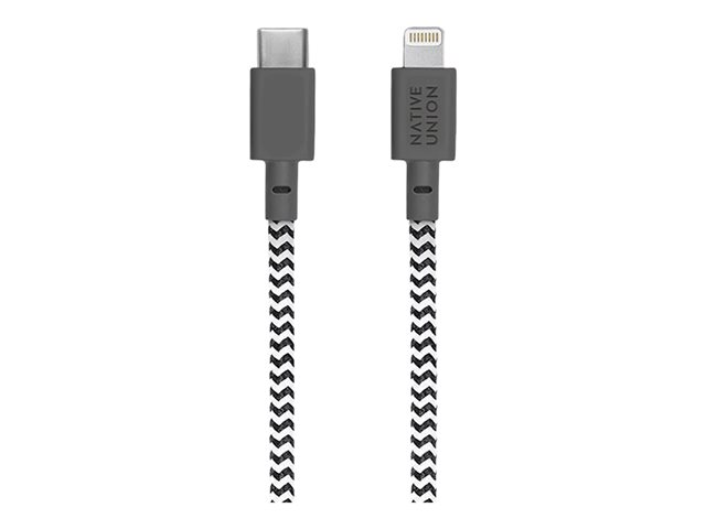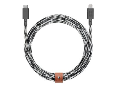 Produktbeskrivning Native Union Belt XL - Lightning-kabel - 3 m Kabel Lightning-kabel Längd 3 m Färg Svart, zebra Kontaktdon Lightning - hane Kontakt (andra änden) 24 pin USB-C - hane Egenskaper Trasselfri, integrerad läderrem Tillverkarens garanti 1 års garanti - Nedladdningsbara filer