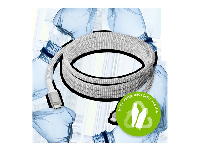 Produktbeskrivning dbramante1928 re-charge Lightning-kabel - 2.5 m Kabel Lightning-kabel Längd 2.5 m Kontaktdon 24 pin USB-C - hane Kontakt (andra änden) Lightning - hane Standarder som följs USB / USB 2.0 Egenskaper Flätad kabel, 100 % återvunnen plast Tillverkarens garanti 5 års garanti - Nedladdningsbara filer