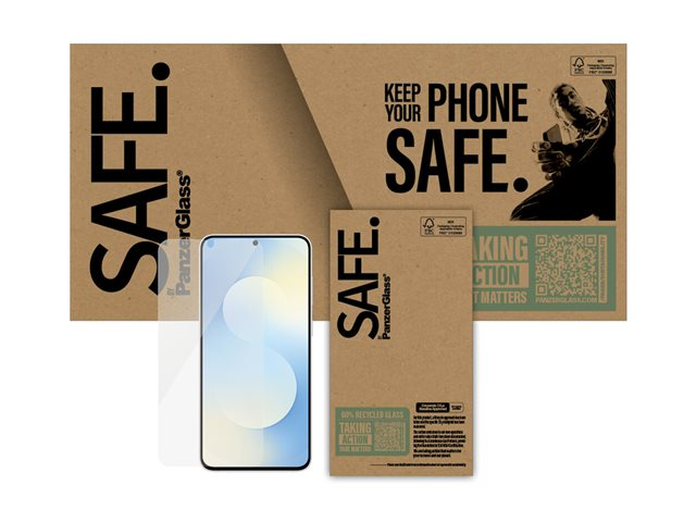 Produktbeskrivning SAFE. by PanzerGlass - skärmskydd för mobiltelefon - ultrabred passning Typ av produkt Skärmskydd - glas Avsedd för Mobiltelefon Skydd Reptålig, vattenavstötande, smutsavstötande, droppskydd, stötsäkert, klåfingerskydd, motstår fingeravtryck, fläcktålig, fettskydd Beläggning Oleofob, kladdfri Produktmaterial PET (Polyethylene Terephthalate), härdat glas Dimensioner (BxDxH) 7.345 cm Längd 15.815 cm Grovlek 0.51 mm Vikt 10 g Designat för Samsung Galaxy S25 FE - Nedladdningsbara filer