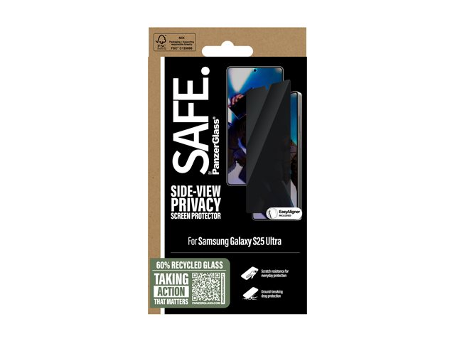 Produktbeskrivning SAFE. by PanzerGlass - skärmskydd för mobiltelefon - ultrabred passning Typ av produkt Skärmskydd - glas - med sekretessfilter Avsedd för Mobiltelefon Skydd Reptålig, kladdsäker, vattenavstötande, smutsavstötande, droppskydd, stötsäkert, motstår fingeravtryck, oljeavvisande, fettskydd Beläggning Oleofob Förpacknings innehåll Skärmskydd, EasyAligner Produktmaterial Härdat glas, PET (Polyethylene Terephthalate) Dimensioner (BxDxH) 7.405 cm Längd 15.922 cm Grovlek 0.43 mm Vikt 12 g Designat för Samsung Galaxy S - Tillbehör
