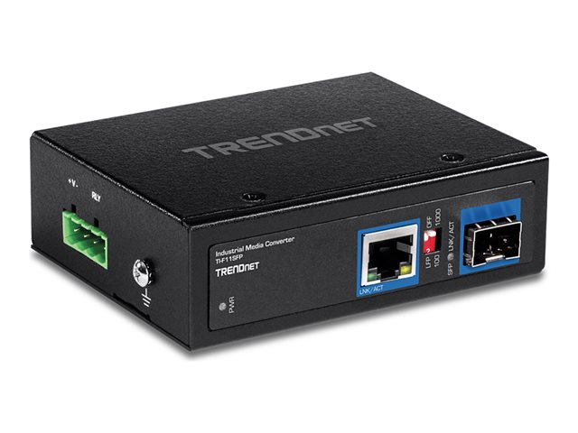 Produktbeskrivning TRENDnet TI-F11SFP - medieomvandlare - 10Mb LAN, 100Mb LAN, 1GbE - TAA-kompatibel Typ av enhet Medieomvandlare - RJ-45 / SFP (mini-GBIC) Formfaktor Kan monteras på DIN-skena Typ av kablage 10Base-T, 100Base-TX, 1000Base-T Dataöverföringshastighet 2 Gbps Datalänkprotokoll 10Mb LAN, 100Mb LAN, 1GbE Strömtillförsel Likström 12 - 56 V - strömadapter medföljer ej Dimensioner (BxDxH) 11.3 cm x 3.1 cm x 8.2 cm Vikt 152 g TAA-kompatibel Ja Tillverkarens garanti 3 års garanti - Tillbehör
