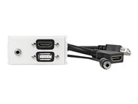 Produktbeskrivning VivoLink utloppspanel Produkttyp Utloppspanel - minihörlurskontakt 3,5 mm, HDMI, USB 3.0 Type A Förpackningens innehåll HDMI-kabel (16.5 cm), USB-kabel (16.5 cm), ljudkabel (20 cm) Dimensioner (BxDxH) 6.61 cm 3.19 cm Tillverkarens garanti 1 års garanti - Nedladdningsbara filer
