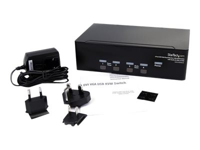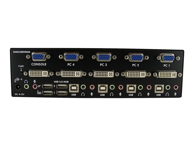 Produktbeskrivning StarTech.com 4 Port DVI VGA Dual Monitor KVM Switch USB with Audio and USB 2.0 Hub (SV431DDVDUA) - omkopplare för tangentbord/video/mus/ljud/USB - 4 portar