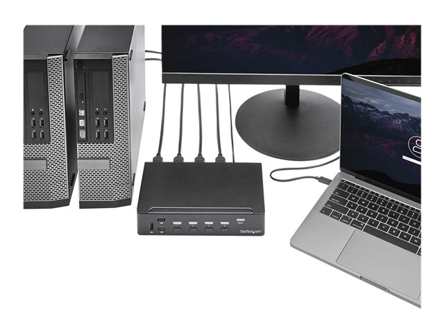 Produktbeskrivning StarTech.com HDMI KVM-switch med 4 portar - USB 3.0 - 1080p - omkopplare för tangentbord/video/mus/USB - 4 portar - rackmonterbar