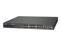 Produktbeskrivning PLANET FGSW-2624HPS - switch - 24 portar - smart - rackmonterbar Typ av enhet Switch - 24 portar - smart Modell Rackmonterbar 1U Undertyp Fast Ethernet Portar 24 x 10/100 (PoE+) + 2 x kombinations-Gigabit SFP PoE (Power Over Ethernet) PoE+ PoE-budget 220 W Prestanda Omkopplingsbar fabriksbandbredd: 8,8 Gbps