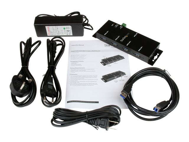 Produktbeskrivning StarTech.com USB 3.0-hubb med 4 portar - Industriell USB-A-hubb i metall - USB-datahubb som kan monteras på vägg eller skrivbord - TAA-kompatibel USB-expansionshubb - hubb - 4 portar Typ av enhet Hubb - 4 portar Undertyp USB Portar 4 x SuperSpeed USB 3.0 Funktioner Monterbar på vägg Standarder som följs USB 1.1, USB 2.0, USB 3.0 Strömtillförsel Likström 7 - 24 V Dimensioner (BxDxH) 6 cm x 15.2 cm x 2.4 cm Vikt 480 g Färg Svart Systemkrav Microsoft Windows XP, Microsoft Windows XP 64-bit Edition, Microsoft Windows Server 2003, Microsoft Windows Server 2008 R2, Microsoft Windows Server 2003 x64 Edition, Microsoft Windows Vista (32/64 bits), Microsoft Windows Server 2008 R2 x64 Edition Tillverkarens garanti 2 års garanti Designat för P/N: ITB20D3250, MSDREADU2OTG, PEXUSB3S23, PEXUSB3S24, PEXUSB3S25, PEXUSB3S42V, PEXUSB3S44V, PEXUSB3S4V, SVA12M5NA, USB312SAT3CB, USB315CB2M, USBLT1MW, USBLT1MWS, USBLT2MBR, USBLT2MW, USBLT30CMW, USBLTM1MBK, USBLTM1MWH, UUSBHAUB1RA, UUSBHAUB3, UUSBHAUB3LA, UUSBHAUB3RA, UUSBHAUB6IN, UUSBHAUB6RA - Tillbehör