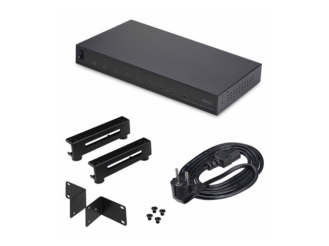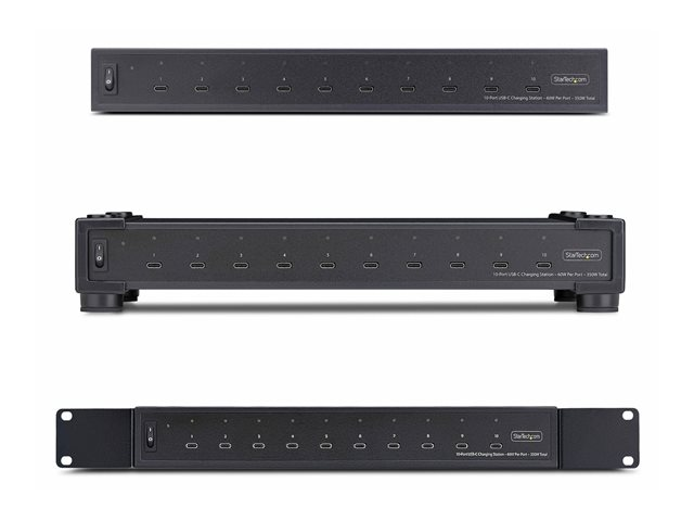 Produktbeskrivning StarTech.com - hubb - 10 portar - rackmonterbar Typ av enhet Hubb - 10 portar Modell Rackmonterbar Undertyp USB Portar 10 x USB-C Funktioner Överspänningsskydd, kortslutningsskydd, Snabbladdningsport Standarder som följs USB-IF-CERTIFIERAD Lokalisering Europa - Tillbehör