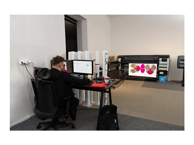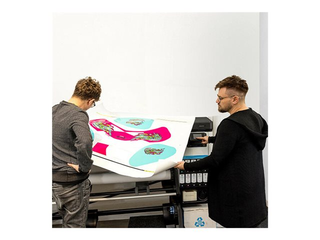 Upp till 7 kvadratmeter/timme - 14 passMaxupplösning (svart/vit) 1200 x 1200 dpi Maxupplösning (färg) 1200 x 1200 dpi Gränssnitt Gigabit LAN Mediatyp Vanligt papper, vinyl, tyg, banderoller, film, bakgrundsbild, planschpapper, syntetiskt papper Skrivarfunktioner 42 kg max rullvikt Strömtillförsel AC 230 V Tillverkarens garanti 1 års garanti Dimensioner (BxDxH) 260.3 cm x 84.4 cm x 140.5 cm - Tillbehör