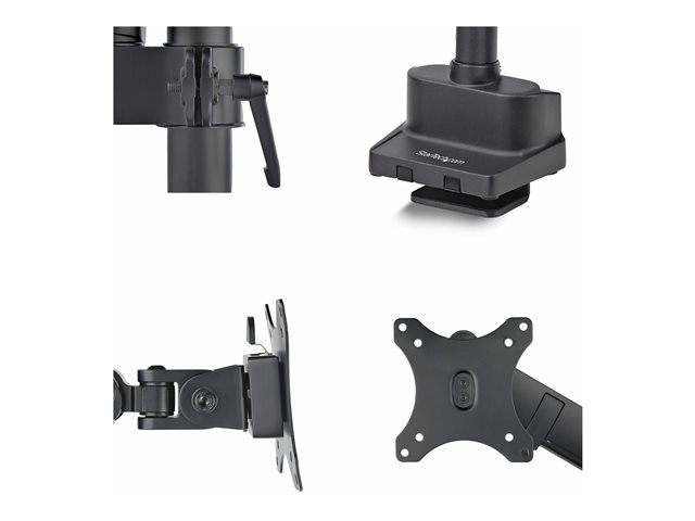 Produktbeskrivning StarTech.com monteringssats - justerbar arm med mekanisk fjäder - för Bildskärm - svart Typ av produkt Monteringssats (justerbar arm med mekanisk fjäder) - disk-monteringsbar, skyddshylsa Monteringskomponenter Armuppsättning, VESA-fäste, C-klämma Dimensioner (BxDxH) 11.5 cm x 60.7 cm x 70.3 cm Lutning -90° till 90° Panorering 180° Lyftkraft 28.3 cm Rotation 360° Svängtapp -90° till 90° Justeringar Höjd, lutning, rotation Vikt 3.6 kg Rekommenderad användning Bildskärm Rekommenderad TV-storlek Upp till 40 tum VESA-infästningsgränssnitt 100 x 100 mm, 75 x 75 mm Maxlast 8 kg Material Plast, stål Färg Svart Förpackningens innehåll 4 brickor, 4 st. skruvar (M4 x 12 mm), 4 x M5x12-skruvar, bas, kabelklämma, öppningsplatta, genomföringsskruv, insexnyckel (3mm), insexnyckel (6 mm), stång, axel, spring arm, svängbar arm, tool holder, VESA-monteringsplatta Tillverkarens garanti 5 års garanti - Tillbehör